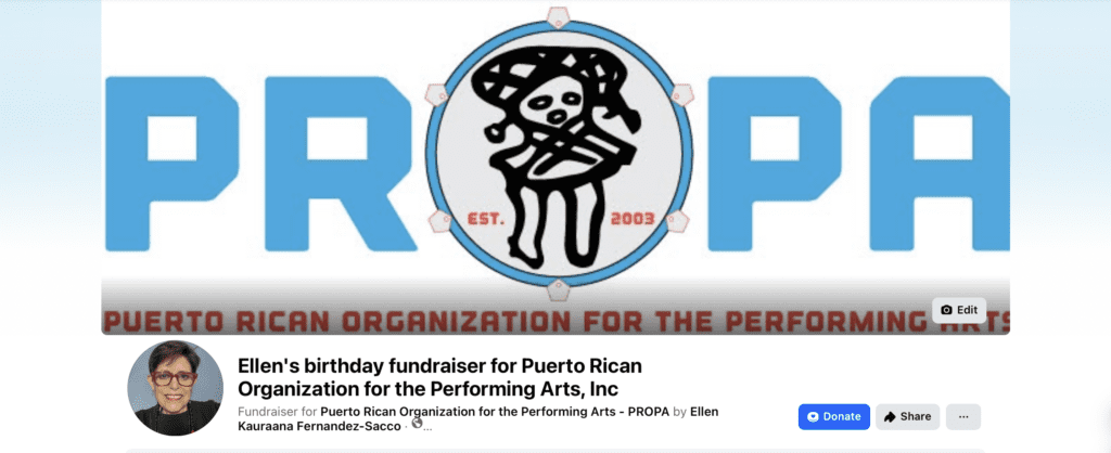 I’ve started a brief birthday fundraiser for PROPA, the Puerto Rican Organization for the Performing Arts based in Orlando, Florida. This is a first for me, that celebrates a significant birthday, and this goal brings friends, family and ancestors together into focus.